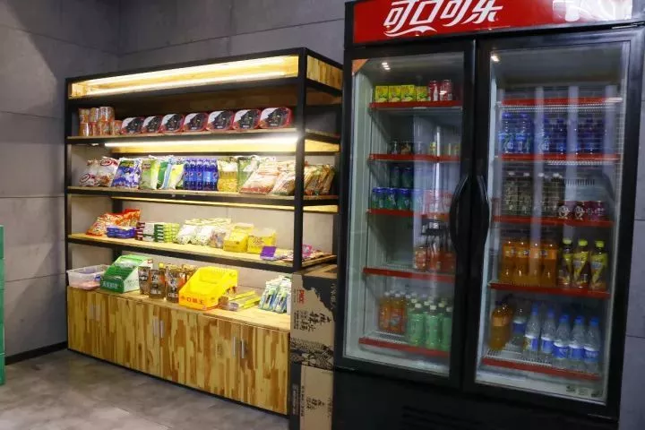 <酒店内的自助零食柜和餐饮服务>